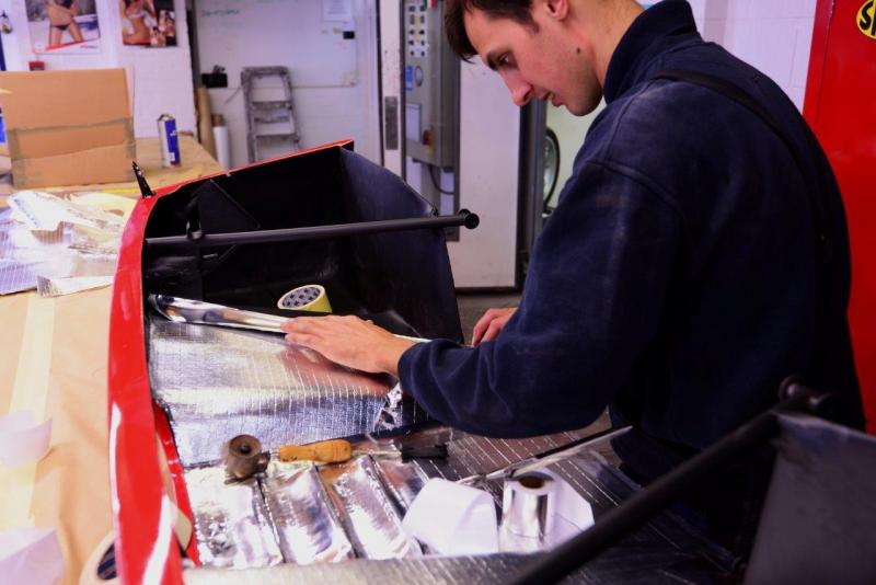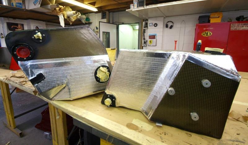 Brake lines now mostly installed as well as air jacks so now turning our attention to the fuel system. Kink in the line from the front master cylinder is being adjusted as lines not yet tightened. James clearly enjoying applying some more Zircotec insulation film to any exposed areas of the tanks before the heat shields are mounted. Should have them mounted in the chassis for the final time tomorrow. Quite frustrating, fitting, removing, fitting removing, makes one feel we are further advanced than we are when they are first fitted, but the only way to get a proper job in my view.