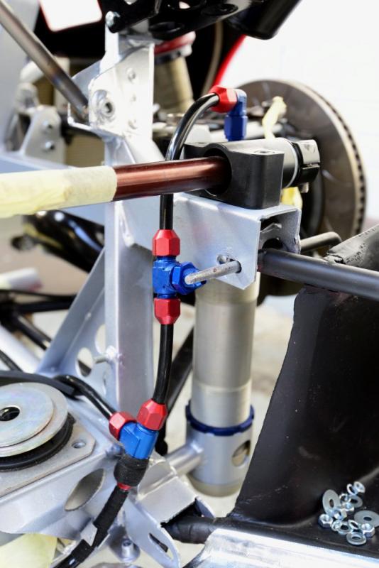 Krontec front jacks now plumbed in and James busy now on the brakes.