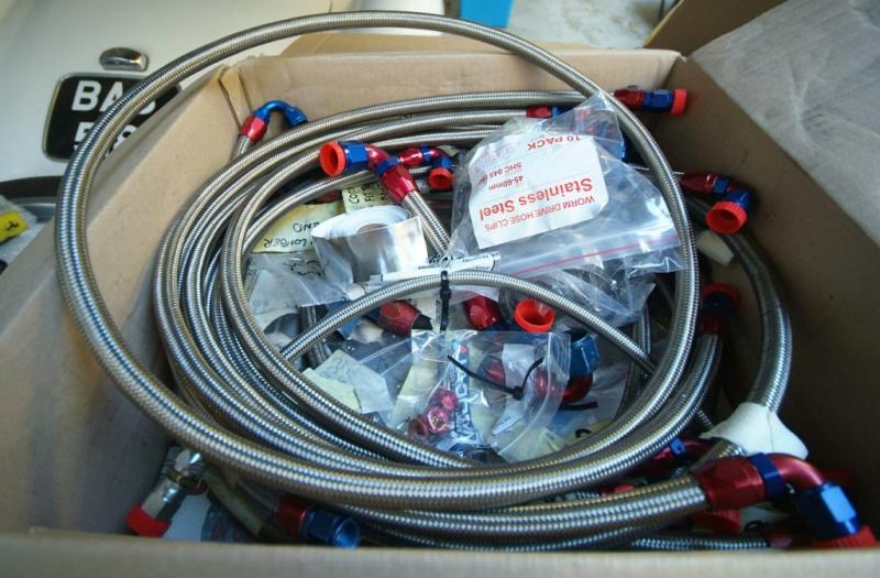 And now the HT leads and gasket set-just silly. First pic shows one of our fuel tanks undergoing a pressure test. Left overnight and they both passed with no issues. Next couple of shots show Colin checking over our restored exhaust manifolds, which in due course will undergo the Zircotec process, and generally collecting all the parts together for the real assembly push.