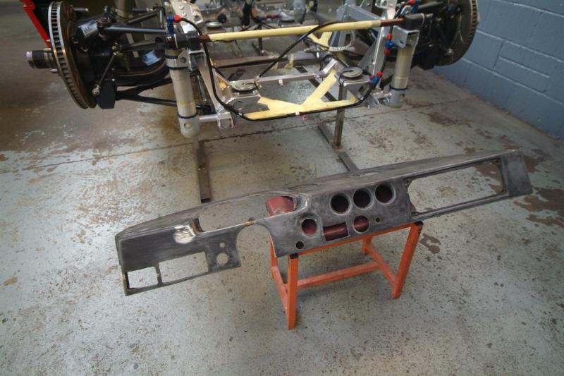 Upside down shot shows Dashboard now well on the way. Right hand side of the dash all sorted, left hand was dominated by the giant red oil pressure warning light which ensured there was no way the driver could claim he never saw it, as covered earlier in the thread, so that has been filled in and will now be arranged as it should be.