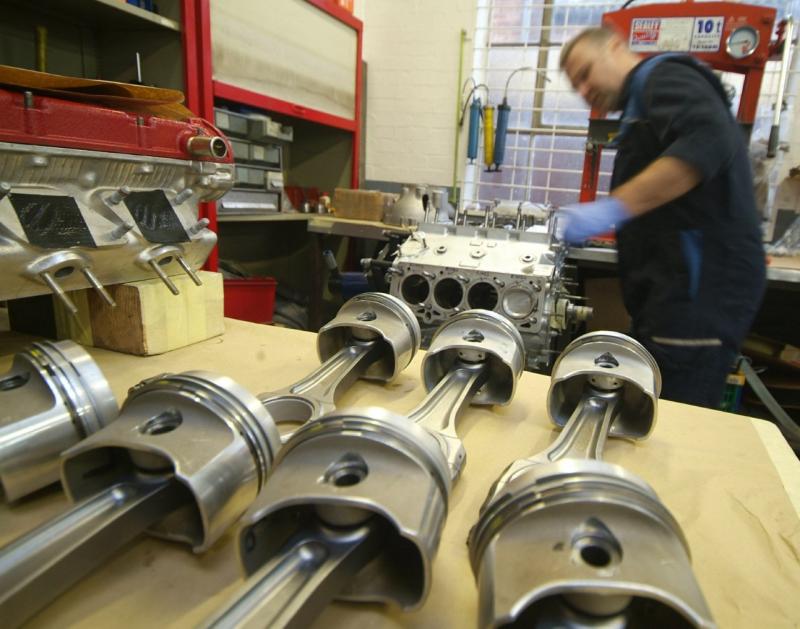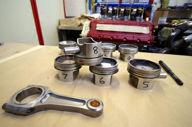 Off to the shop, but to bring you up to date for now. Engine assembly now starts in earnest after the ‘dry’ assembly. Here you can see the Titanium conrods all lined up in battle formation, pistons and gudgeon pins, numbered from the dynamic balancing, some of the sensors, gear linkage and finally the throttle linkage sub assemblies. I wonder if any F40 engine has received such a detailed and pristine rebuild?