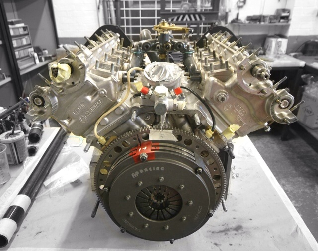 The dashboard starting its restoration journey.Massive aperture to the left of the steering wheel used to house a huge bright red fog light so there was no way the driver would miss the low oil pressure warning light. We are reverting to a more sophisticated and less intrusive LM system. An engine and gearbox shot and then the polished radiator back in for good but looks so much better all cleaned up. Hope to have most of the front finished up by the weekend with any luck. Appallingly, it appears Mototechnique have had their attention diverted by other customers who want their cars finished so there has been a bit of a pause in progress, and photos, for a few days, so off on Friday to collect some more updates and redirect their attention.