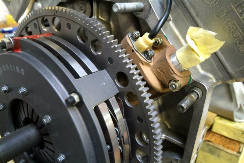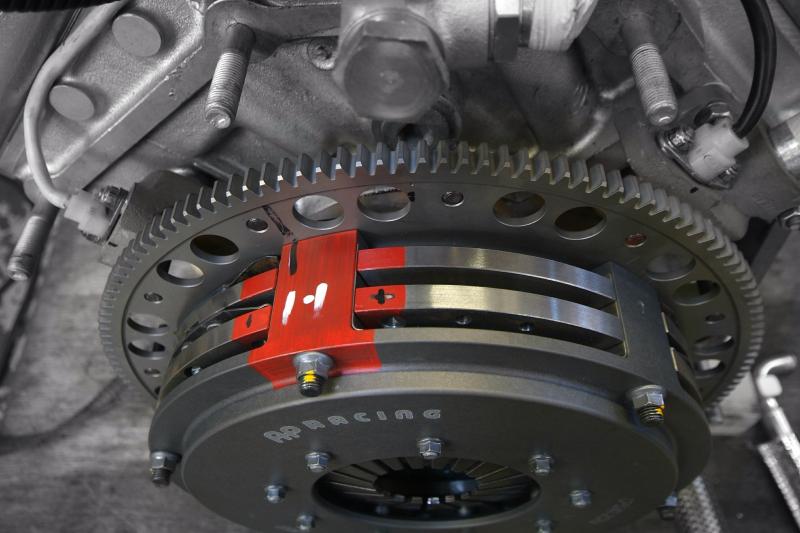 Clutch and lightweight flywheel shown here with marks indicating position as balanced