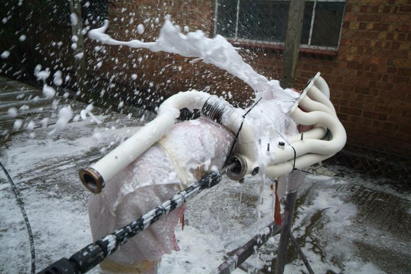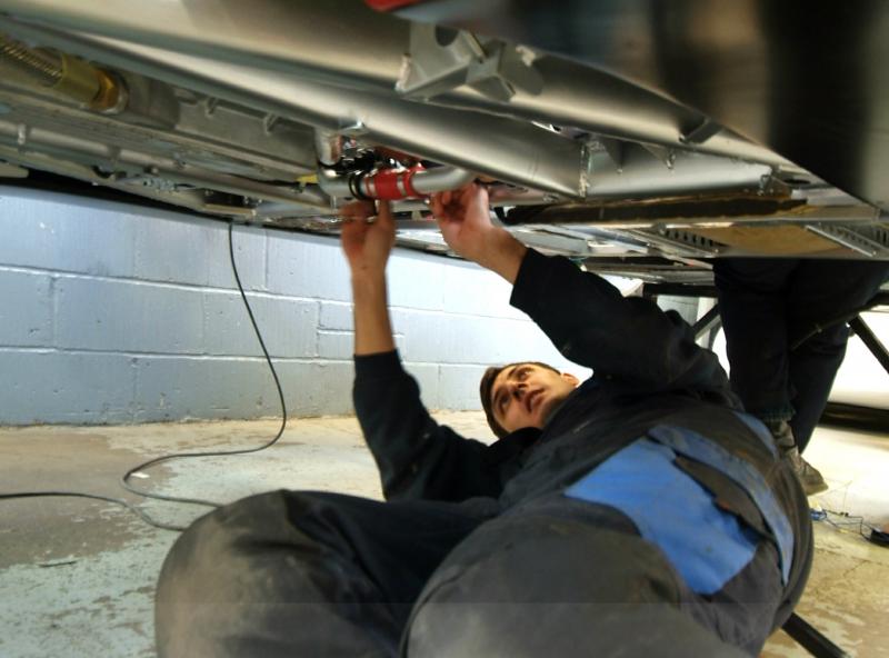 FINALLY, we have cleaned out the exhausts from the crud and James is now carefully manoeuvring them into position.
