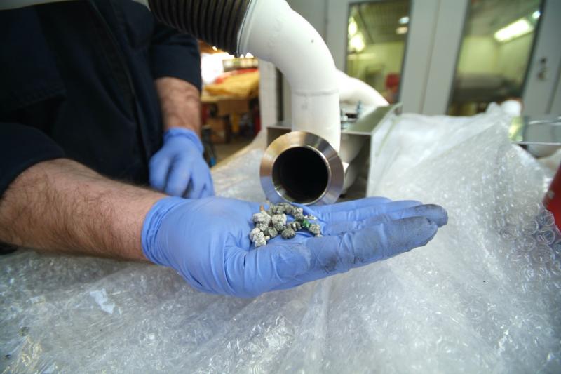 We finally received the manifolds back from Zircotec who said as follows: ‘when they were received on 26th February we undertook a thorough internal inspection finding no further evidence of foreign matter, we did, however, observe evidence of some internal surface scratching which suggests that some mechanical cleaning had been applied. However, as a precaution we cleaned out the pipes with cellulous thinners and pulled through a course swab. This showed evidence of combustion product and mild oxidation, but no foreign matter.’We then decided to check for ourselves