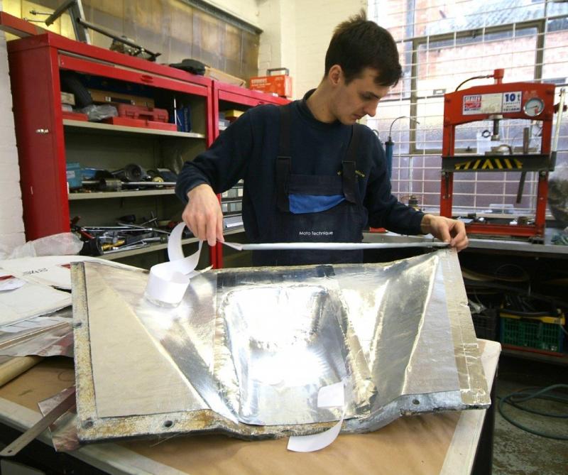 James now finishing off the engine bulkhead heat insulation with more Zircotec product.