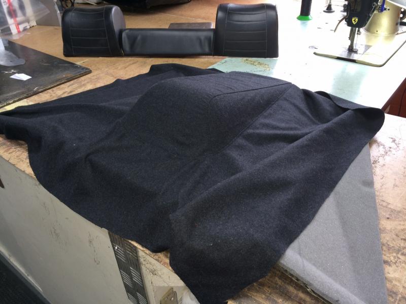 Rorky, the worlds foremost interiors specialist (OK, maybe one of), son of Kevin the Head Man at Moto T, and responsible for the dashboard is now turning his attention to the less than demanding bucket of 22 bits requiring mouse hair but at the same time has pointed out that the Michelotto seats are looking pretty grubby and will not clean up. They did apparently have mould growing on them let alone oil stains and so we are left with no option but to recover.Interestingly the standard road car seats are covered with a very effective slightly coarse material, whereas the LM chairs have this nasty nylon like stuff that picks up everything as per the attached. The sensible and practical choice would be to go for the nice road car finish so we have gone for the nasty impractical choice but somehow it just looks right.