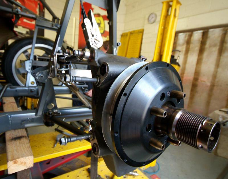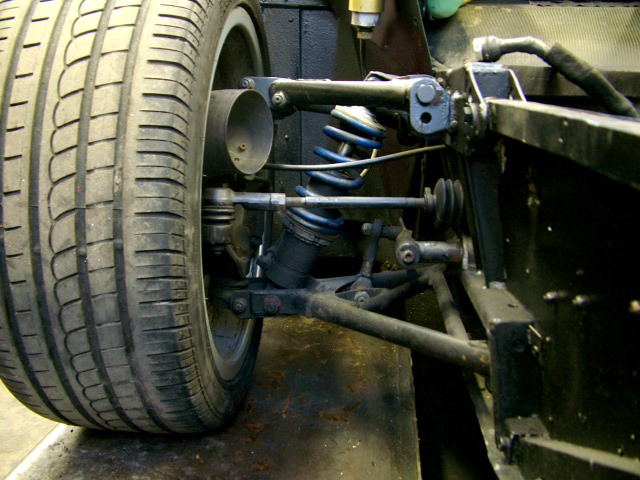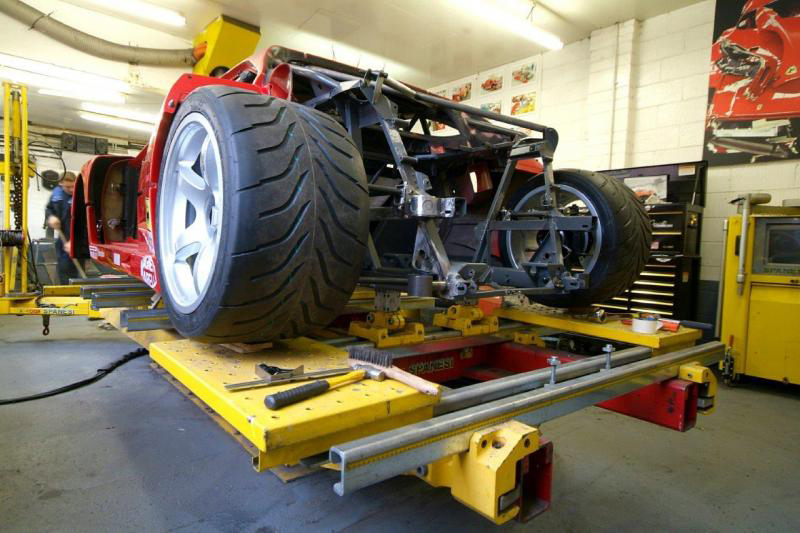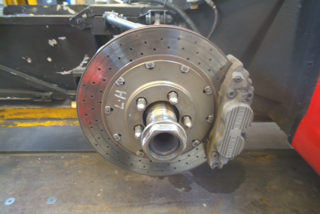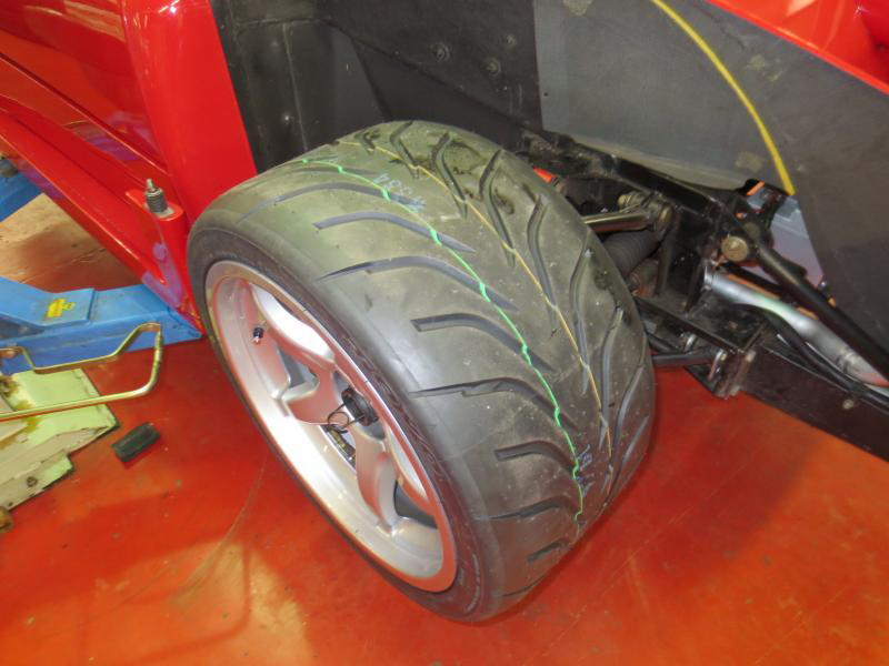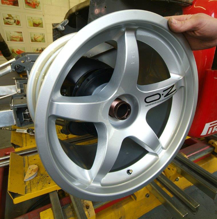So now we have the front and rear suspension just about mounted. Few alterations needed and the works of art will shortly be in place. Interestingly I note that the front uprights are made of Avional, apparently a super strength lightweight Swiss alloy (had to look that one up) and the rears are Magnesium, again, all with Titanium adjustment. Expensive, but you begin to understand why.Now we have all the set up info from Michelotto we are fine checking with computerised Spanesi Touch system to ensure everything is absolutely spot on.Adjustable LM brakes, adjustable anti roll bars, Carbon Fibre ducting, Magnesium pedal box, master cylinder and light weight Konis etc are hopefully incoming tomorrow!! Hopefully.Everything will be offered up to the chassis, adjusted and fixed before disassembly for final chassis paint.Got to love those rear tyres!I am hoping that by the end of next week, we might finally be in the paint shop…….maybe