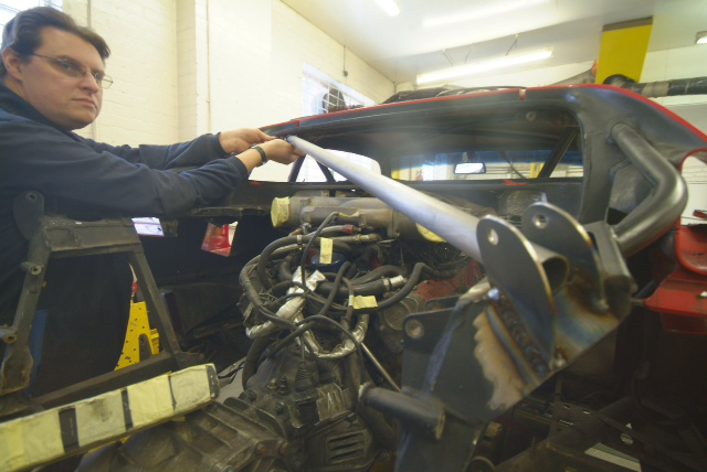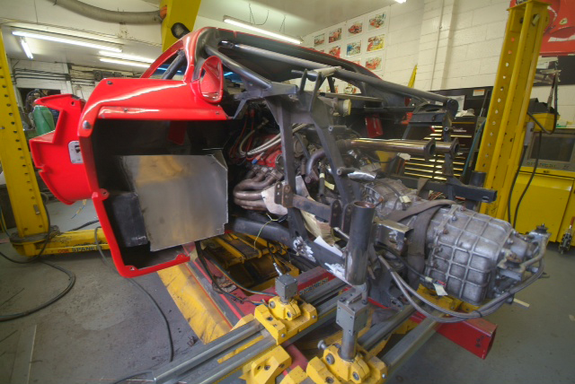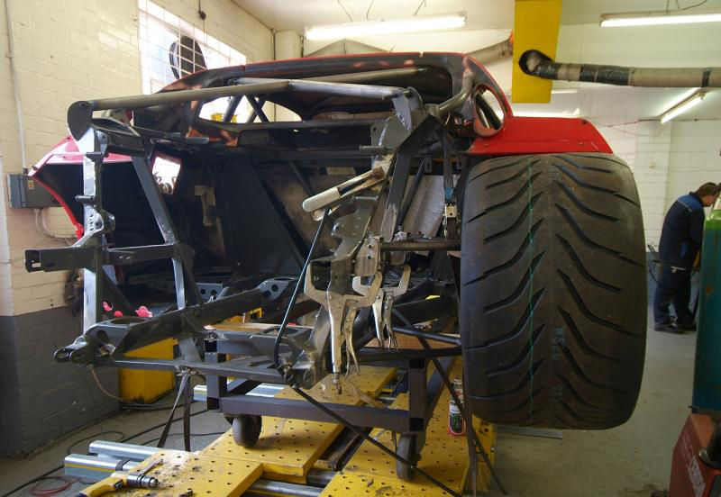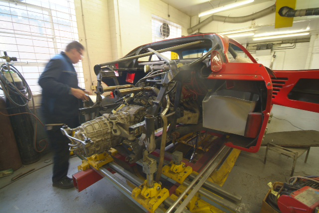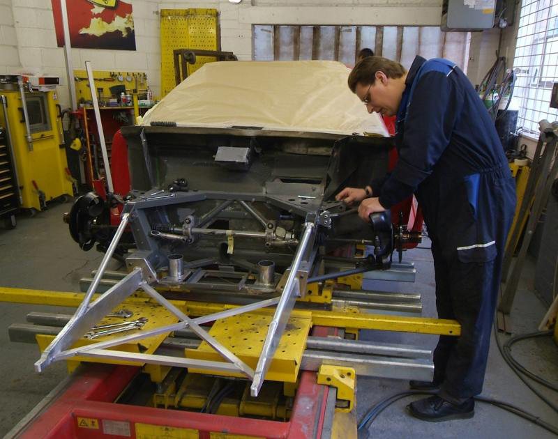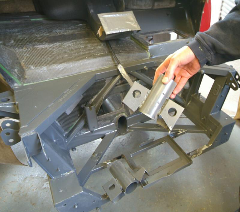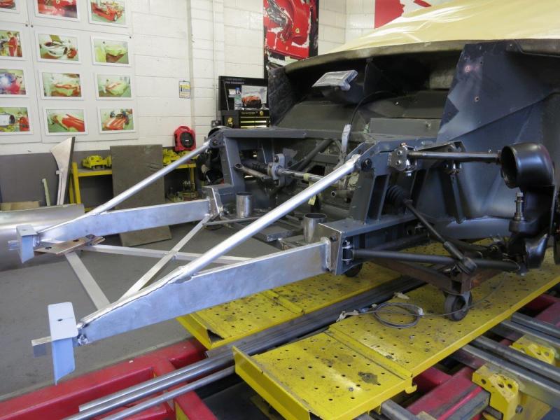 Whilst we have the chassis on the jig and importantly the engine still in, we are changing the single LM cross brace to the more rigid GTE style.