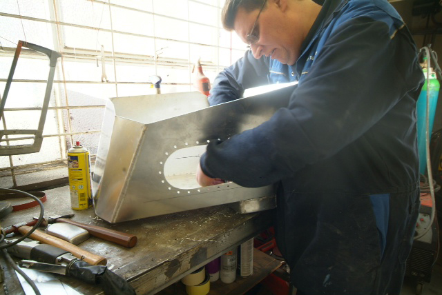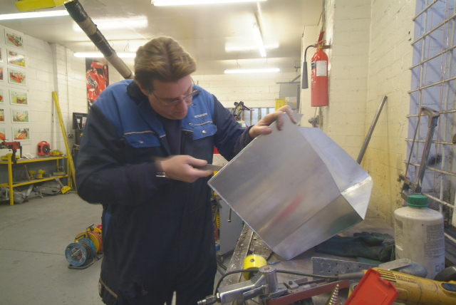 Crankshaft out and away for polishing and dynamic balancing. All new bearings will be fitted. Meanwhile work continues of the bodywork with the rear clam being adjusted to accept revised position for air jack inlet which, so as to be road legal, cannot protrude and so has to be slightly recessed.