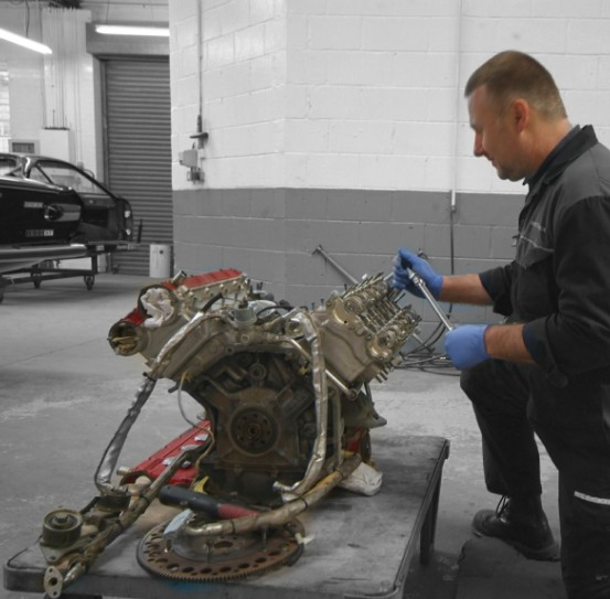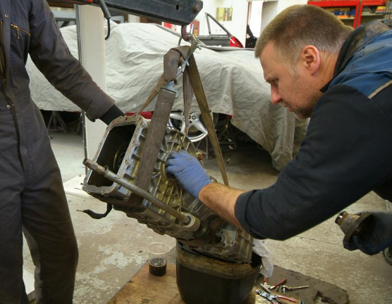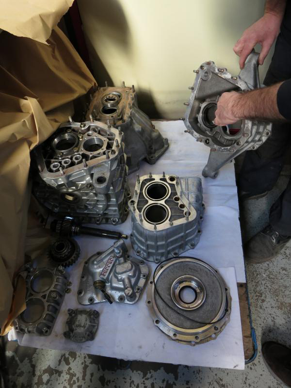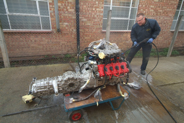 Finally a filthy engine is released. 24 years of road and racing grime removed in a few hours and what a result. We then will break down the gearbox and on Michelotto’s recommendation, replace second gear as it is apparently a known weak spot when you start pumping more power through it, especially when used in anger as in racing. Also considering changing the crown wheel and pinion as apparently this car ran in excess of 220 and again on his advice, he suggests a reduction to give us a top speed of about 190/195 which is what he gears his current race cars to, even at Le Mans. The gain, obviously, is in acceleration.