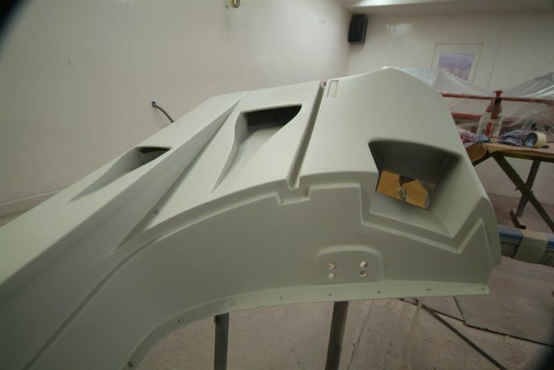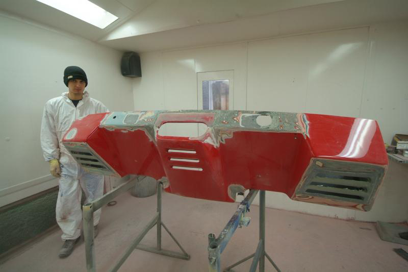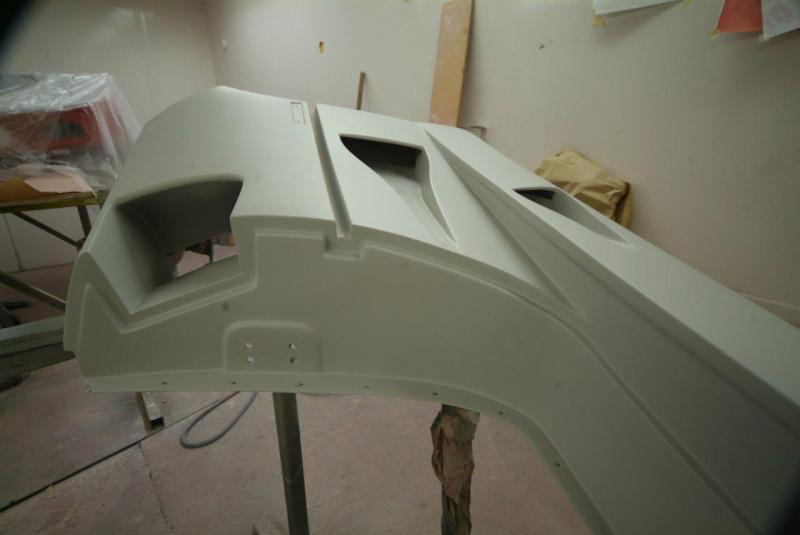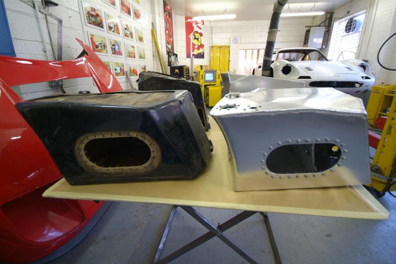 That is exactly my aim, to create a car that can be used rather than become a garage queen, and hopefully finished to a higher standard than any of the competition and good for another 25 years.Meanwhile, we have rear clams in primer and finally side pods in primer, all looking very neat and tidy with faired in fuel caps etc, just waiting for the final front body panels to join them.Next up refit the suspension (again) and the panels to the chassis, line up all the panels so as to get the gaps correct in situ, something Ferrari never did, make final adjustments and then actually paint the panels red! Meanwhile front clam, which can be treated separately and in relative isolation to the rest as it only has a junction with the chassis rather than other panels, can be done once we have finished all the ductwork. Then all the suspension has to come off again (4th time) for chassis paint.I feel I just about have my fingertips on the edge of the hole now-maybe a couple of weeks before final assembly actually starts and I can see out of it.