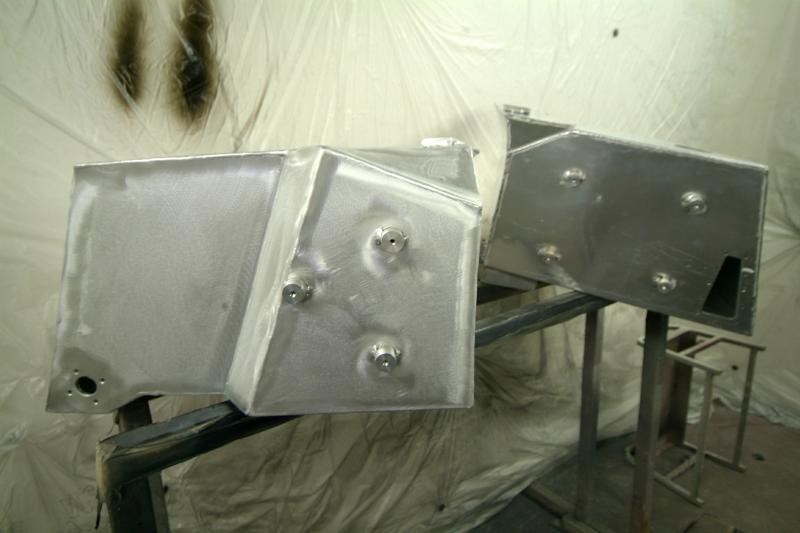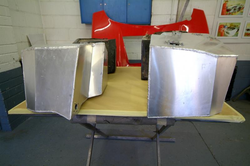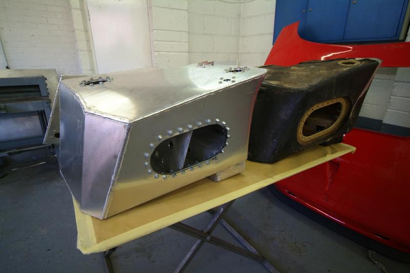 Original car ran with tanks cloaked in a sort of rubberised paint and were well past their sell by date. They are different to road tanks as fuel pumps etc are external for racing. We looked at fitting new cells which only have a 5 or possibly 10 year life(jury seems to be out on this) and as I plan on keeping this car a long time, we decided we did not want to have to take her apart again in a few years time, so we wanted to do better and evolve. Also as the US cars had alloy tanks, this was hardly stepping into the unknown.