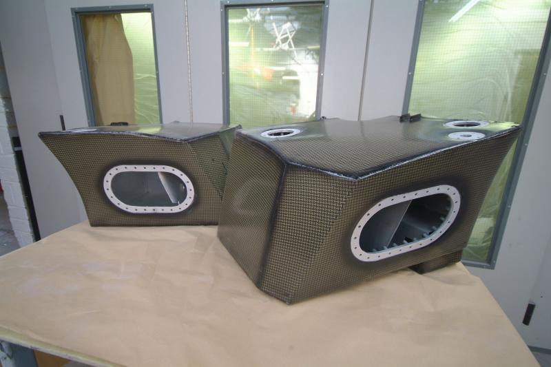 hilst I struggle with my server and turbo decisions, more progress on the fuel tanks. Here you see them being coated with fibreglass and then we start the Kevlar lay up as in the last photo.The finished articles will be works of art.
