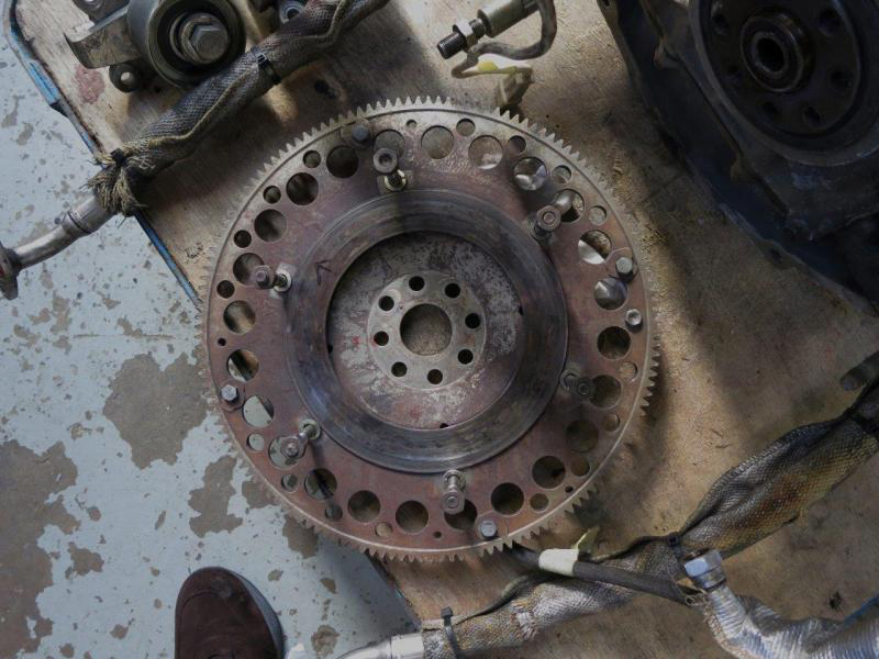 The Flywheel and clutch.The clutch is no issue and we will replace with an AP race unit. The Flywheel is. Very different from a stock flywheel and yet still road driveable and they have taken literally kilos out of it. Unfortunately the teeth that engage with the starter motor are finished and cannot be remachined and there are other issues so we will need to replace and right now it looks like we might have to make our own and then rebalance with the crank.Anyone have any ideas out there?Chassis now back from being stripped and perpetration is starting and details in the next post.