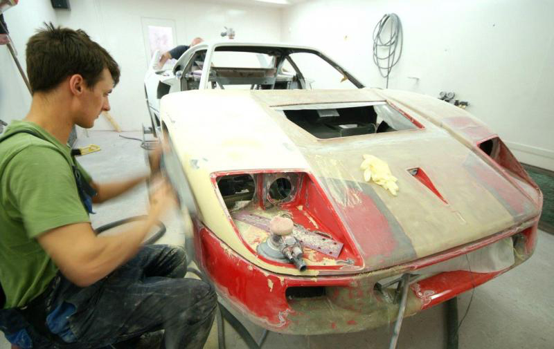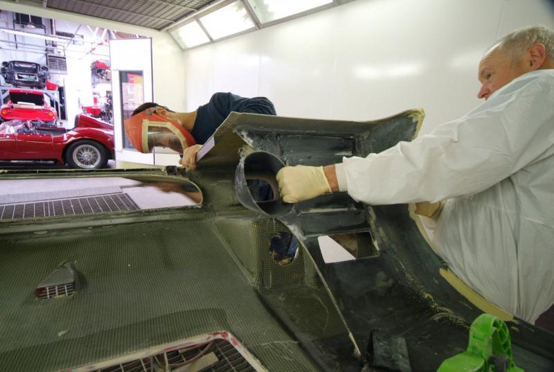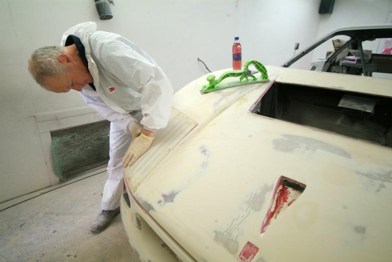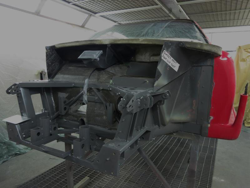 Back in the paint shop, hopefully now with definite intent of colour, and the final shots, I think, of the prepared and un-painted front clam. Wednesday it will be in primer.Work continues on final preparation and the rear panels and roof are just about ready for paint having been primed and baked. We will see colour this week!Hopefully also a week of deliveries as we assemble all the parts out being made/treated by specialists. Manifolds with Zircotec coating, new turbos again Zircotec treated, new lightweight flywheel and clutch, reground camshafts and maybe even our re-polished crank. Or at least that is the plan, but to be honest we are not being held back so none of this is on the critical path, as yet.