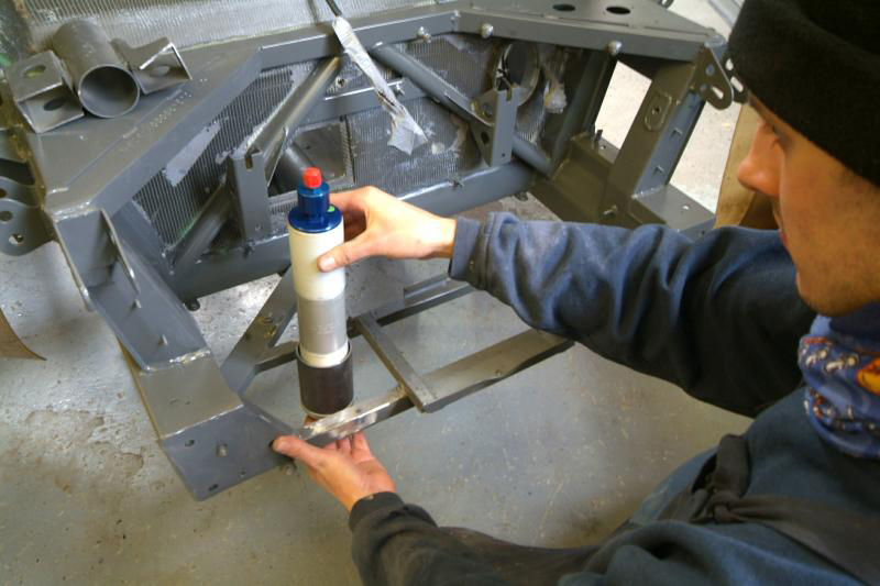 We are currently working our way through installation of the air jack system and still awaiting delivery from Michelotto which is causing us a delay. We are fitting a top of the range (read expensive) Krontec system and tidying up the chassis. Then after we get the delivery and dry mount the suspension, finally everything comes off for final chassis silver paint.For those of you worrying about the look of the carbon, don’t, it is just masking tape residue and once the chassis is painted will all be cleaned up.