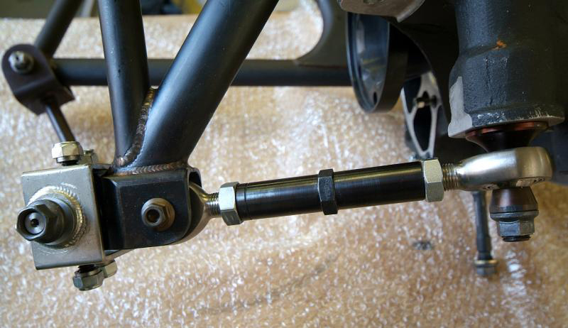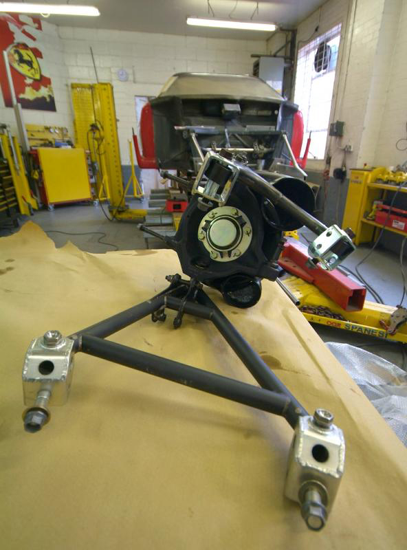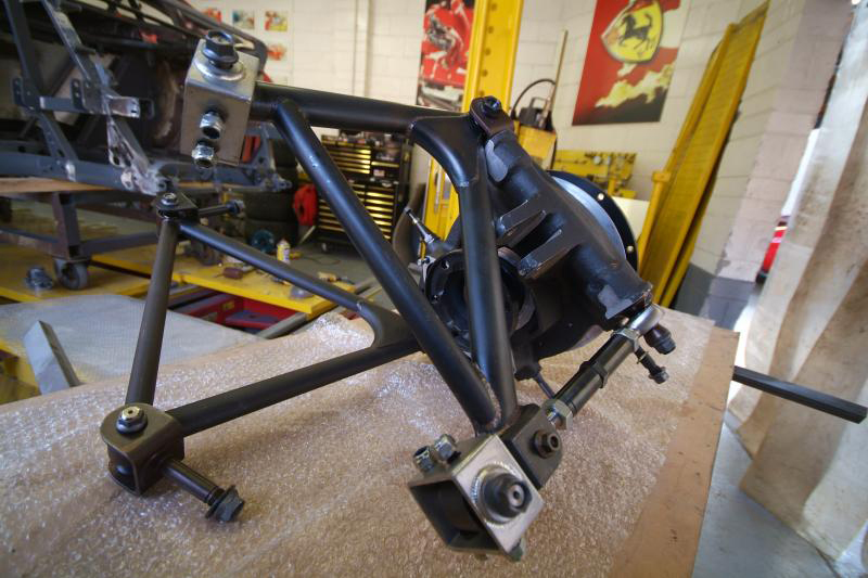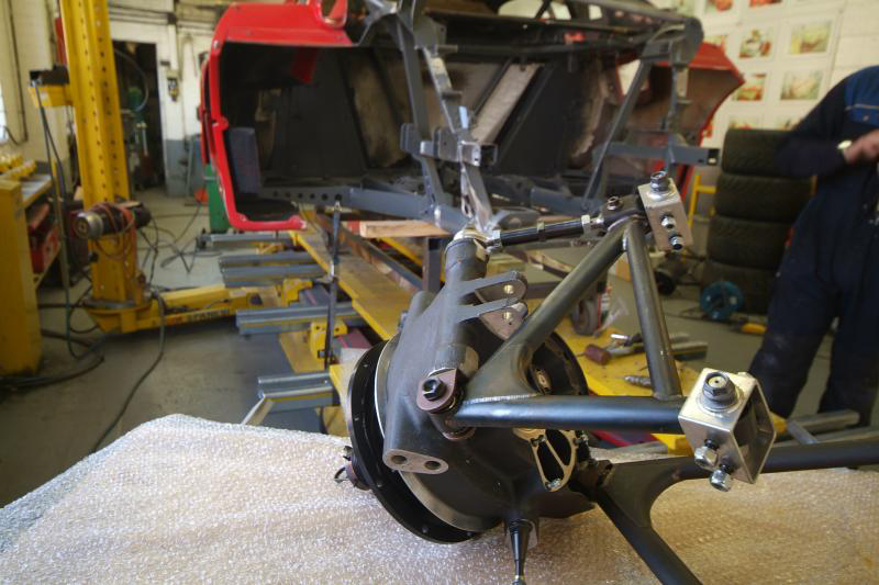 Well whilst we are somewhat stuck on resolving our engine and gearbox issues, progress on the front suspension at least. Track rod ends are hanging as bespoke rose joints are awaited from Italy.As you can see, front all now ‘soft’ mounted pending arrival of the rear suspension which needless to say was promised for last week and the week before etc etc but is still with Michelotto. Once we have that we can fit rear suspension and the uprights for the front, all brakes and anti roll bars front and rear and then take it all off again so as to finally start to finish the chassis, getting it top coated in the silver.Then we can start to move forward properly and to have a finished effectively rolling chassis would be a major landmark, probably even a half way point?