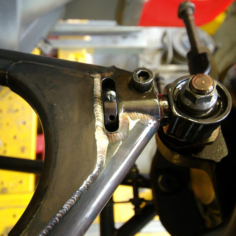 Don’t know if this is of interest to many, but it is to me, as we have stripped the car we have found many small mods that differentiate this race car from a street car. Latest is that due to the far higher loads placed on the suspension through both the wider tyres, slicks cornering and braking loads, not only were the wishbones bespoke and strengthened (for sale if anyone is interested), but even the pick up points have all been beefed up, front and back as in this blurry example.