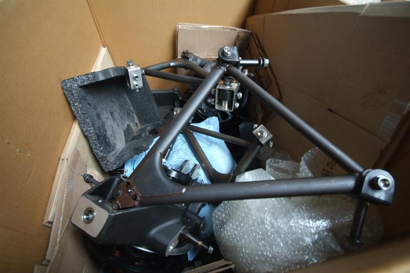 Thanks for all the interest and support. Strange, I never thought I would enjoy posting the journey as much as I do, I thought it would be quite trying but in fact the reverse. Very satisfying to share the ups and downs of this adventure with all enthusiasts here with varying levels of knowledge resulting in many useful thoughts and opinions, but all bonded by a common love of the Marque. Brilliant.Meanwhile, CM made a delivery! Yes, 8 weeks late but look what turned up, two sets of rear wishbones assemblies. I will post more once we have had the chance to unpack properly. Apparently the anti roll bars etc are due to leave Italy today and the brakes etc tomorrow. We shall see, but all being well, we might have all these vital components within a week or so and then we can really crack on, at least with the chassis etc.