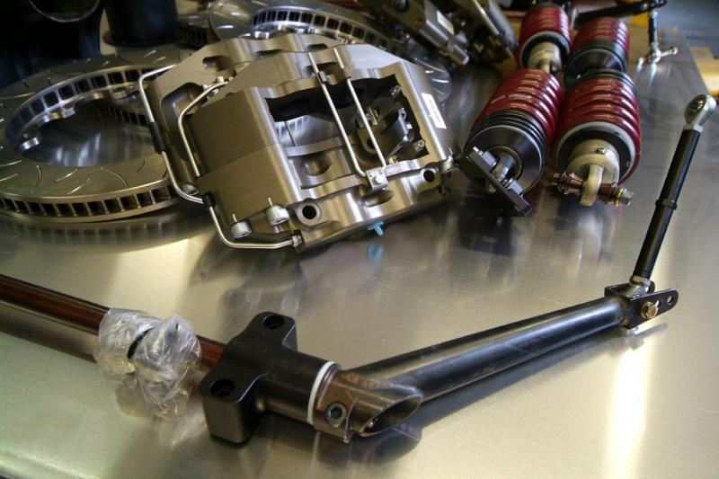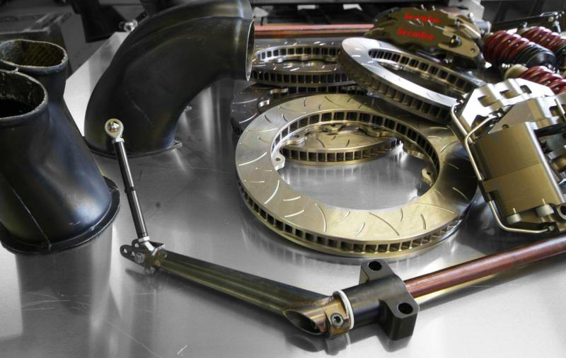 On the Tyre front, many thanks for the thoughts especially Paul and GV27 which means I might well opt for now for Goodrich and import from the States. One issue is that I really would like a 35 profile rear but it just seems impossible to find although I have one of the top tyre guys in the UK working on it for me and so hopefully will be in a position to make a decision imminently, as I need to so we can move forward on bodywork etc. I can see I may end up with a set of street tyres and possibly a set of track tyres or slicks, not that I have driven much on slicks.Back to the car, as the ‘prize’, have a look at a few details of the Michelotto front suspension. Not a simple bolt on so we will have to make some minor changes to the pick up points, but that will then enable us to move forward and hopefully in 10 days time we might have the rest of the order, ductwork, brakes, anti roll bars, rear suspension, uprights etc.Being racing parts the wishbones have not been treated so we are looking at powder coating or similar. All beautiful very high quality aircraft grade materials.Note the hand written reference on the hub. Tailor made.