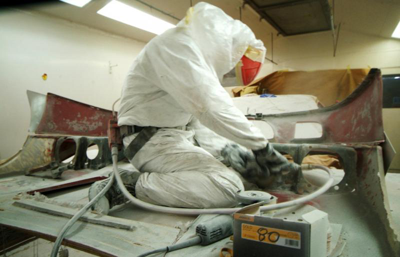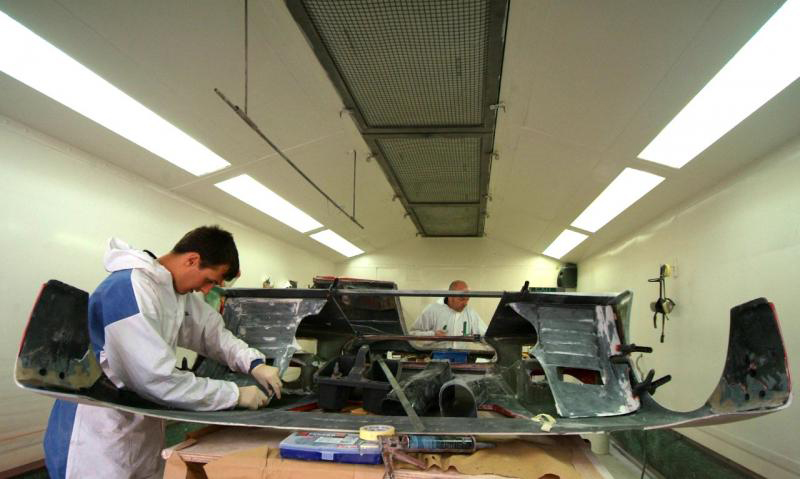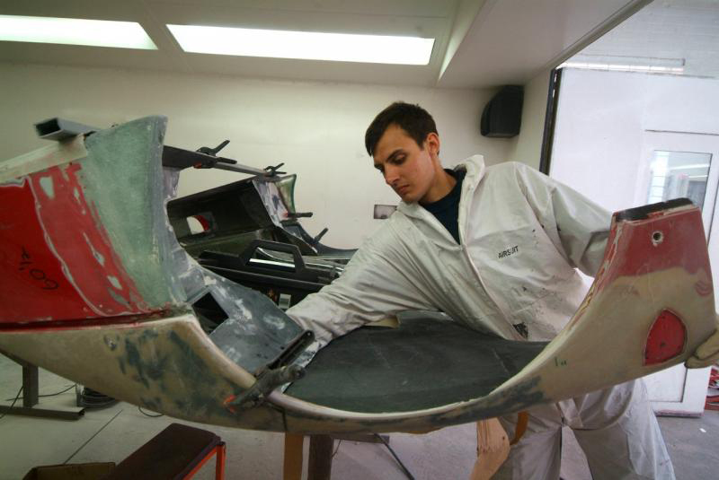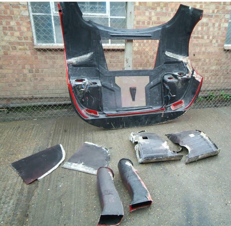 More images of prep work on the body. All old and defective panels such as cooling ductwork and wheel arches are being renewed in Kevlar as appropriate. A lot of work to return it to as new. Side pods are now off so we can get access to the final part of the chassis for paint, and yes it looks like paint next week! That is truly exciting and finally as opposed to digging a hole we can start to fill it in. A potential turning point and I find myself wishing away time.
