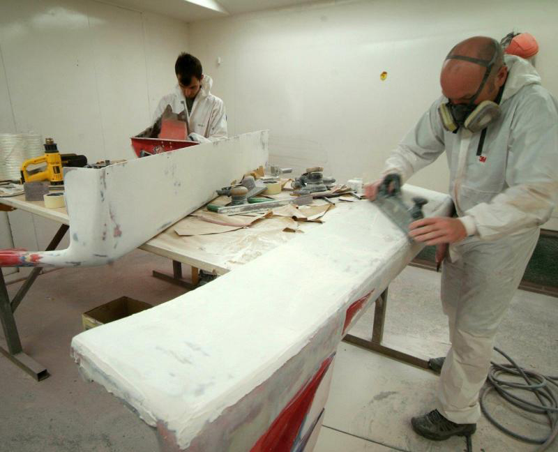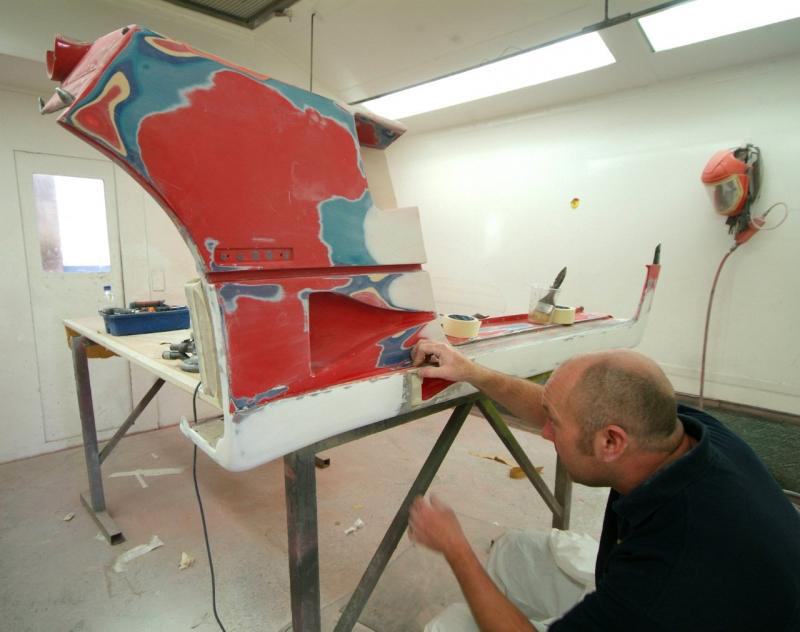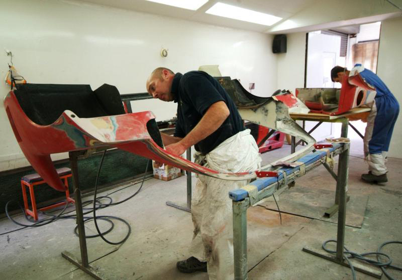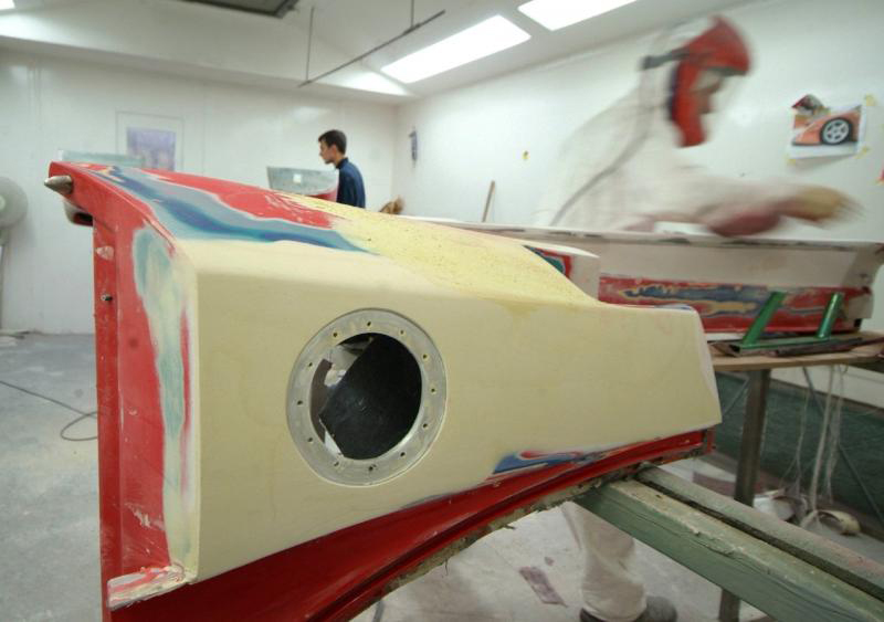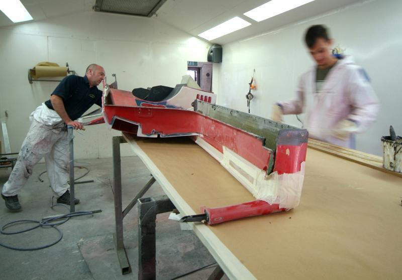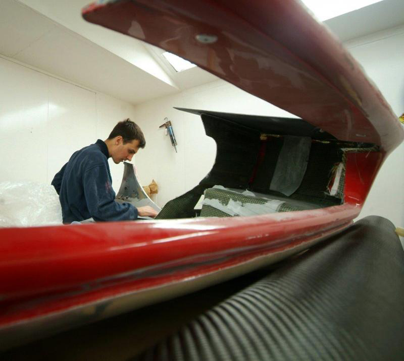 A lot of work going into what was a pretty ratty front clam. Here you can see some of the Kevlar being laid up, wheel arches being bonded in and preparation being made for the ductwork. What a change – kilos of weight removed and we are ending up with a lighter stronger unit from where we started. Another week to go on this and then all the bodywork will be behind us.