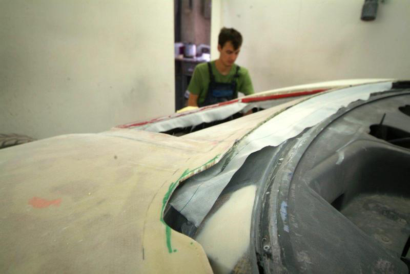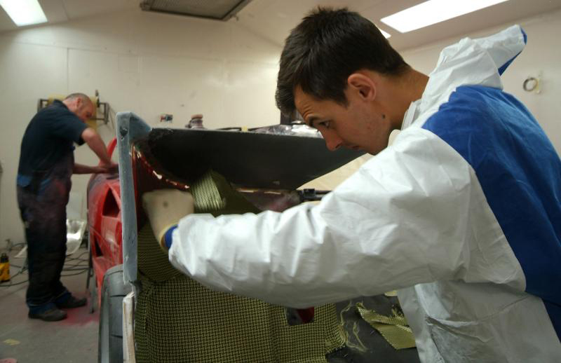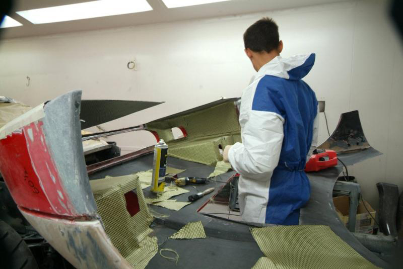 A few pics of the body panels in prep. Laying up the new Kevlar underneath the front clam so now light and strong. Plan is to get primer on the roof and chassis this week and then all being well colour next.Reason for the increase in images is trippling in manpower which, once we have the chassis and body sorted will mean things drift back to normal which from a financial viewpoint is comforting.