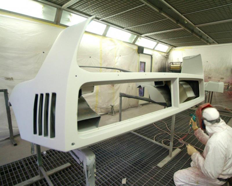 The very last shot of the front clam before we apply polyester spray filler, a sealing coat which will tie all substrates together before final finishing and full priming. Just checking the Perspex headlight covers for a perfect fit and then off to the spray booth tomorrow.Some colour by the weekend? Not on this panel, but hopefully elsewhere.