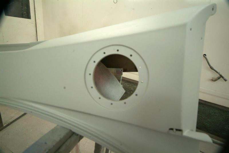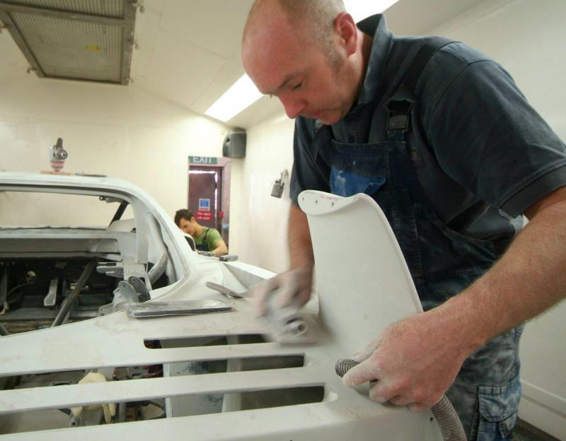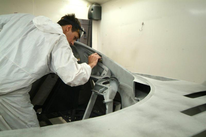 Meanwhile, we are sending the inlet manifolds off for the Zircotec finish as keeping the charged air cool is clearly a plus and anything we can do to reduce the temp of these will be a good start.Meanwhile a few more pics of progress. Here you can see the last photo (I promise) of the chassis pre final paint, the areas where we have been working on the jacking system etc being two pack expoxied before the mist coat and top coat are applied next week. Final prep for various panels and they are being primed today whilst the new fuel filler caps are blended in and the work comes to an end on the sills. All being well, everything except the front clam will at least be in primer next week, and chassis painted.
