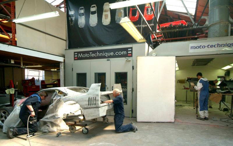 Couple of other shots from last week. More work on the front clam and appreciate the background.The quality of cars passing through Mototechnique’s workshops is truly amazing. More to follow….