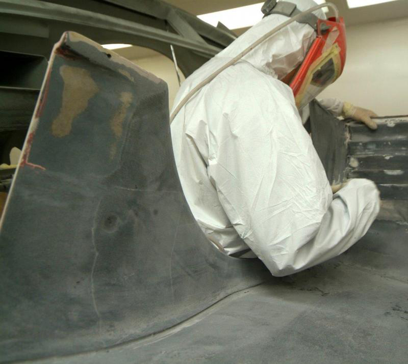 The strip down begins and note the Air Jack inlet just behind the door which we will recite in the lower rear clam as well as sorting the shut line.