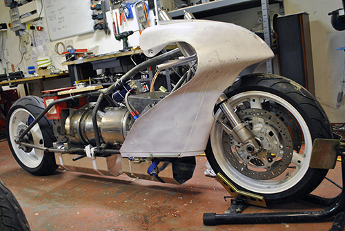 I just found your website and thought I should show you my little project that has been going for 4 years and counting, it is a scratch built gas turbine motorcycle with which I aim to set a land speed record in the APS/Omega class at Bonneville Speed Week.