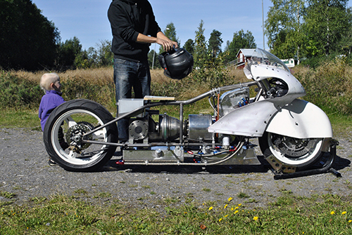 Just when I think I’ve seen it all, when I think I can’t possibly be surprised at what pops up in my inbox, along comes Anders with his gas-turbined powered motorbike. When I actually figured out what I was looking at, all I could do is sit back and laugh in amazement. I consider myself so lucky that people like Anders want to email me their amazing projects, built using techniques that I can’t even begin to comprehend. To get to the point, I’ll let him explain what he’s got cooking…