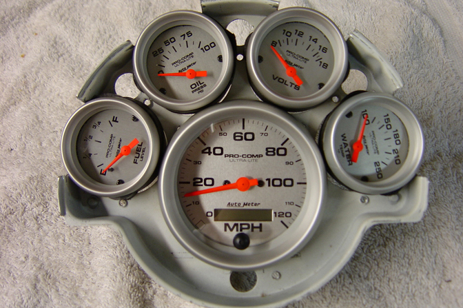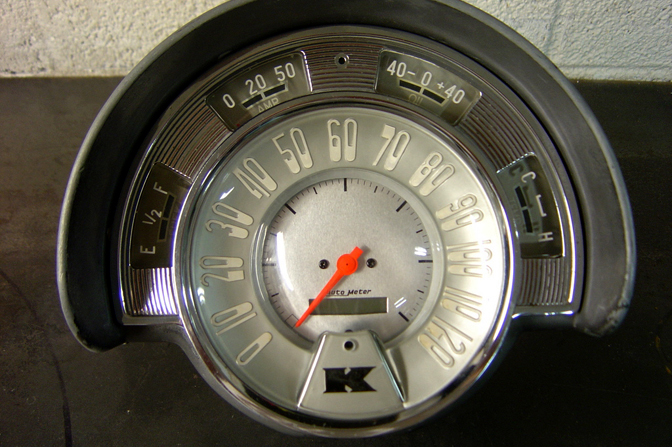 Then, the numbers were rubbed off from the speedometer, and only the needles of the smaller Autometer gauges were visible. This retains the classic appearance of the original dash while having more accurate functionality thanks to the newer components.