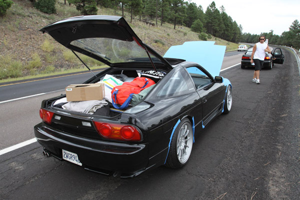 What happens when you work for a major car magazine and share a fully equipped communal garage with your sister titles? You build a badass car, that’s what. Fresh black paint, OEM aero, all the good bits underneath, and an LS3 V8 swap to supply the power makes for one very tasteful and effortlessly powerful S13. And what better way to test the limits of your freshly built and swapped car than with a 2400 mile road trip?