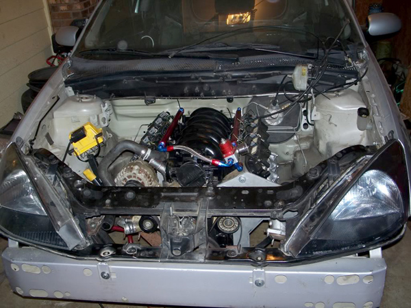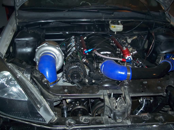 Here’s another car that’s a bit left-of-field. Daniel submitted this one, a little Ford Focus packing some GM V8 grunt with a healthy sized turbo hanging off it for some extra fun. Unfortunately there’s quite a few dead pics in the thread, hopefully they come back online soon.