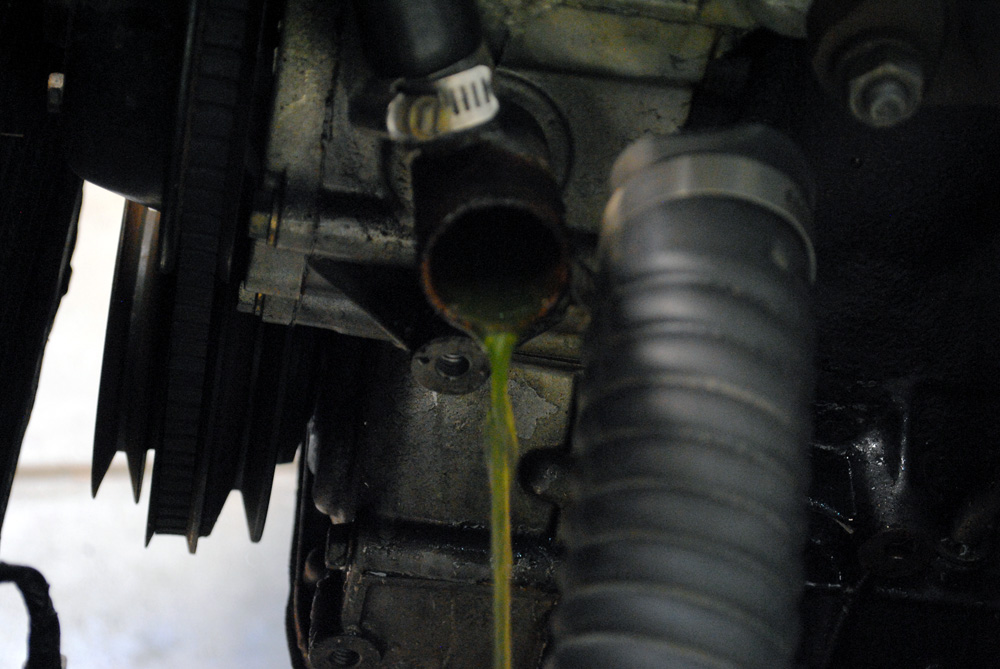 Since the radiator was coming out, the old hoses were removed and all fluid drained.