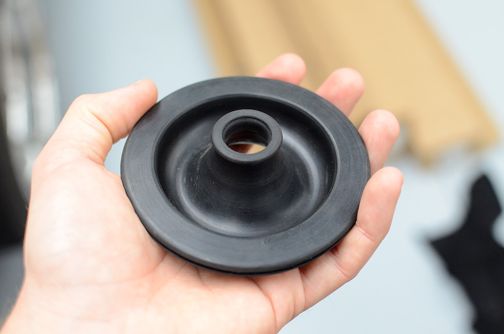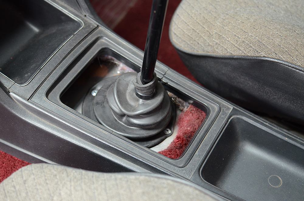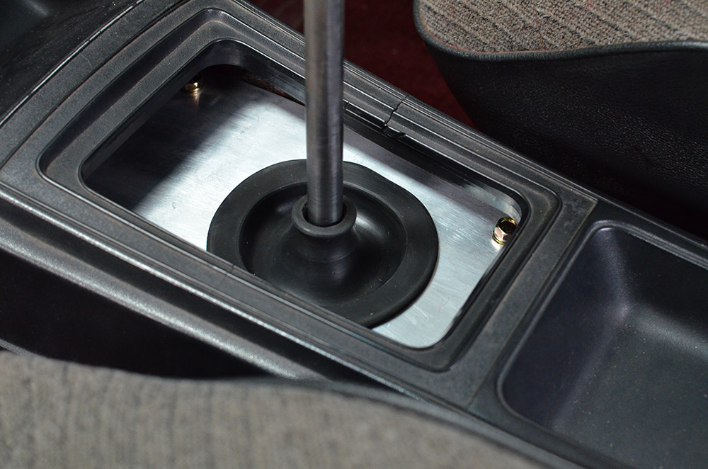 I searched long and hard for different gear boots, wanting to make sure I found the most minimal looking piece I could find. After speaking with Lachy, he suggested I look into boots made for Austin Healy’s, which is how I ended up with the one in the above photo. It is made with a lip inside the outer diameter, so you just need to have a hole cut to the right size for it to fit into, no clips or rivets or glue required.