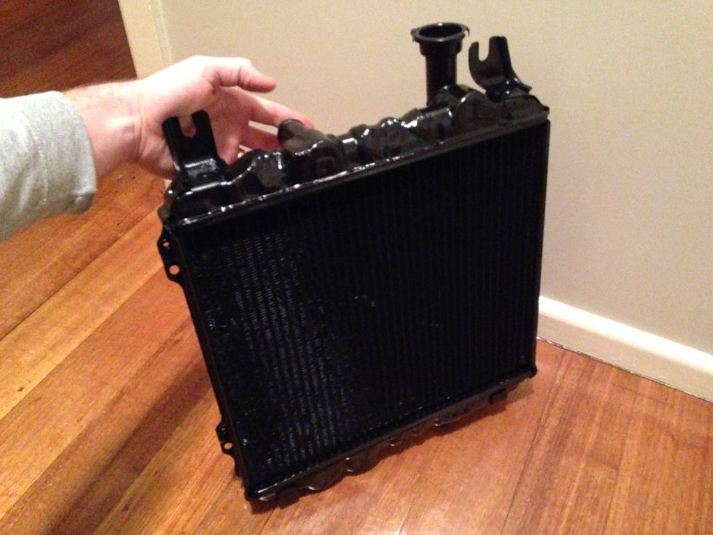 I picked up our reconditioned radiator today. Eastside Radiator Service in Glen Waverley did a brilliant job for a really reasonable price. Recommended if anyone else needs a similar job done. The core is brand new. It was the only one Adrad had available in in the right dimensions. I think it’s for a Suzuki of some sort.