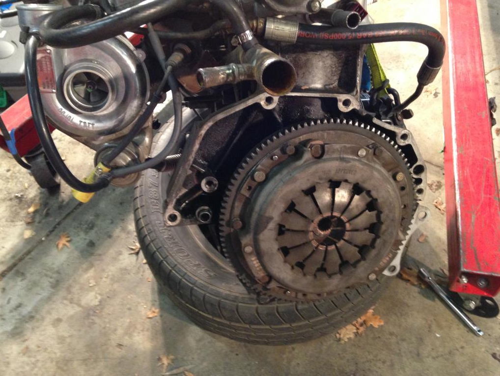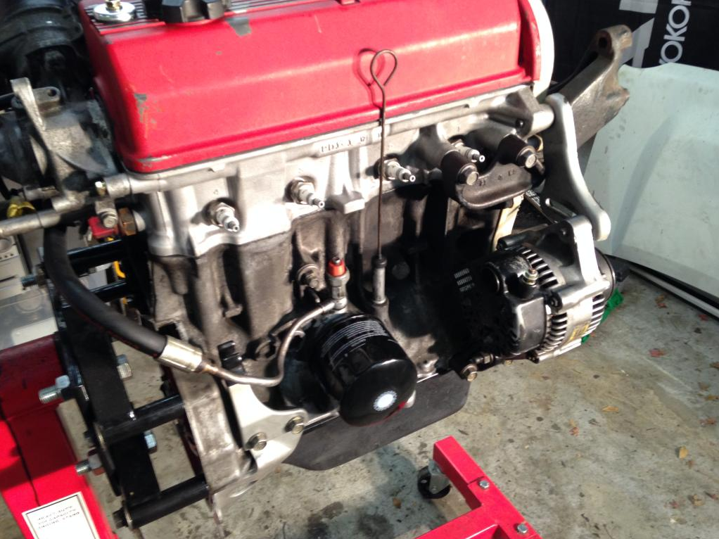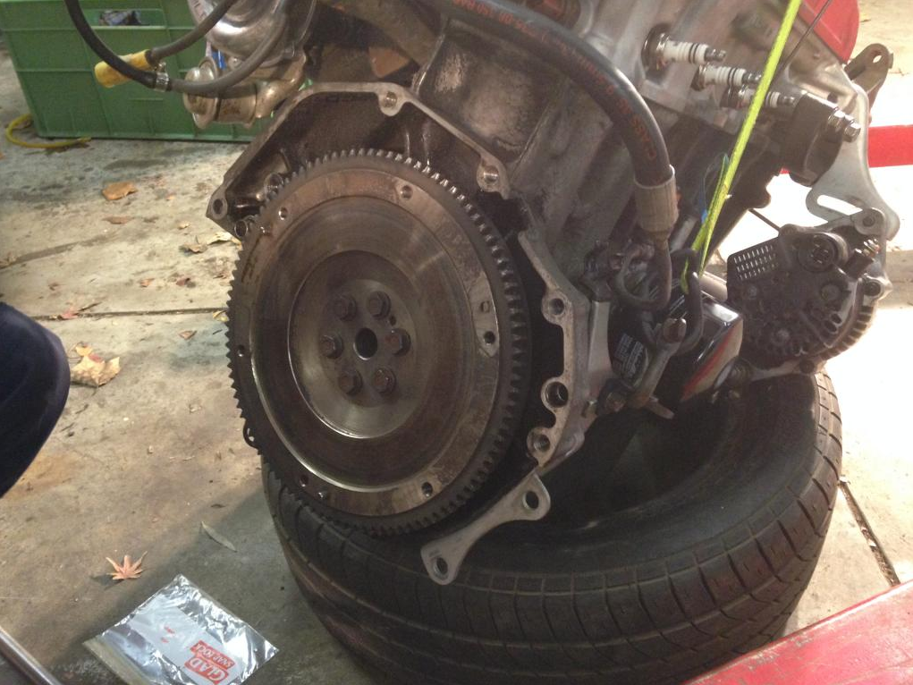 Dropped the engine off its stand to sort out the gearbox end of things.
