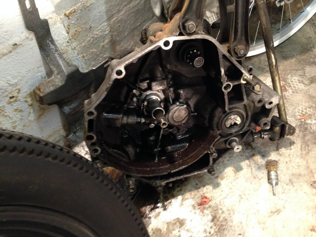 Bit of gearbox cleanup. We did buy a new throwout bearing, but it turned out to be the wrong one. Thankfully our standard one was fine.
