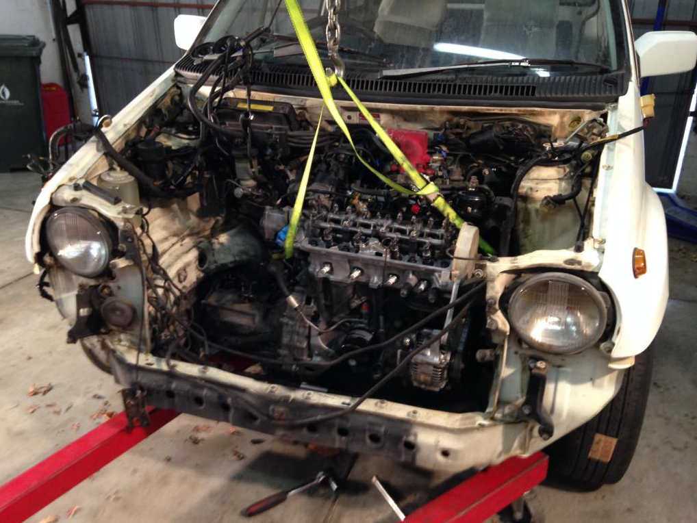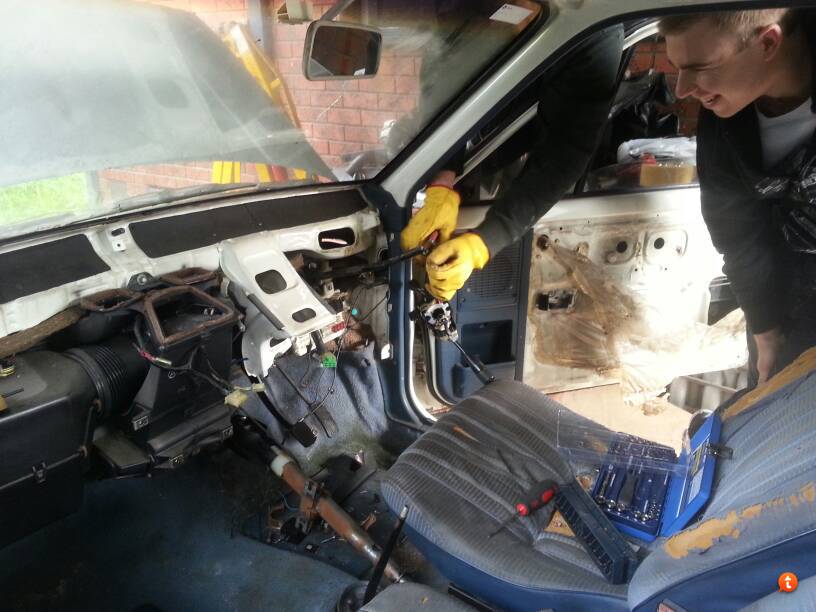 Realising how much of the parts car we could use, we went back for more pillaging. Things like a bonnet release cable, the dashboard, spark plug leads, passenger door handle, radiator and gear selector linkages.