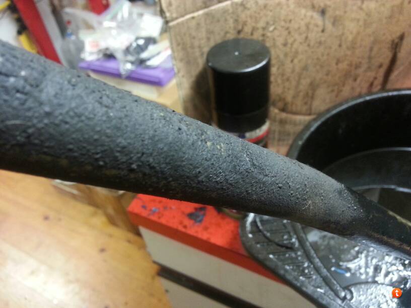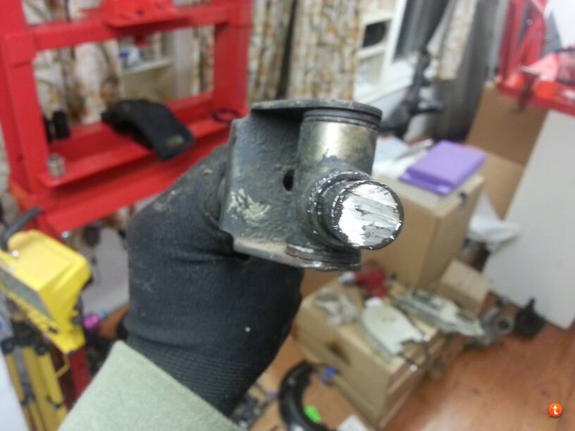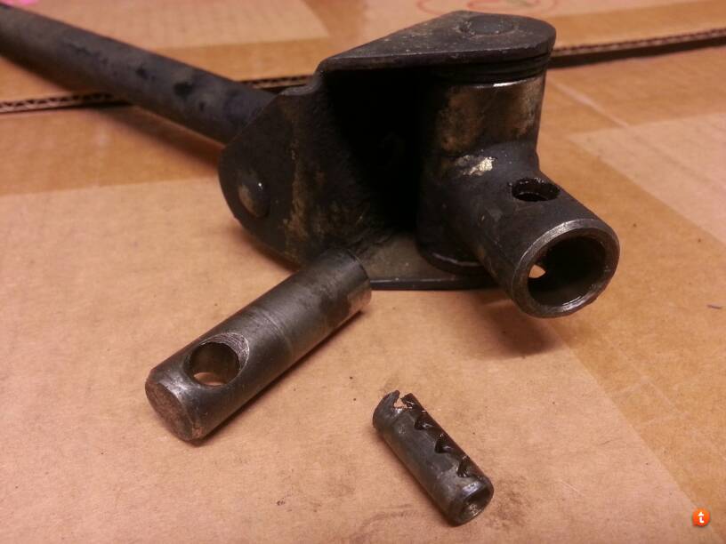 Tony took the link home and used a hydraulic press to get the roll pin out. Great success.