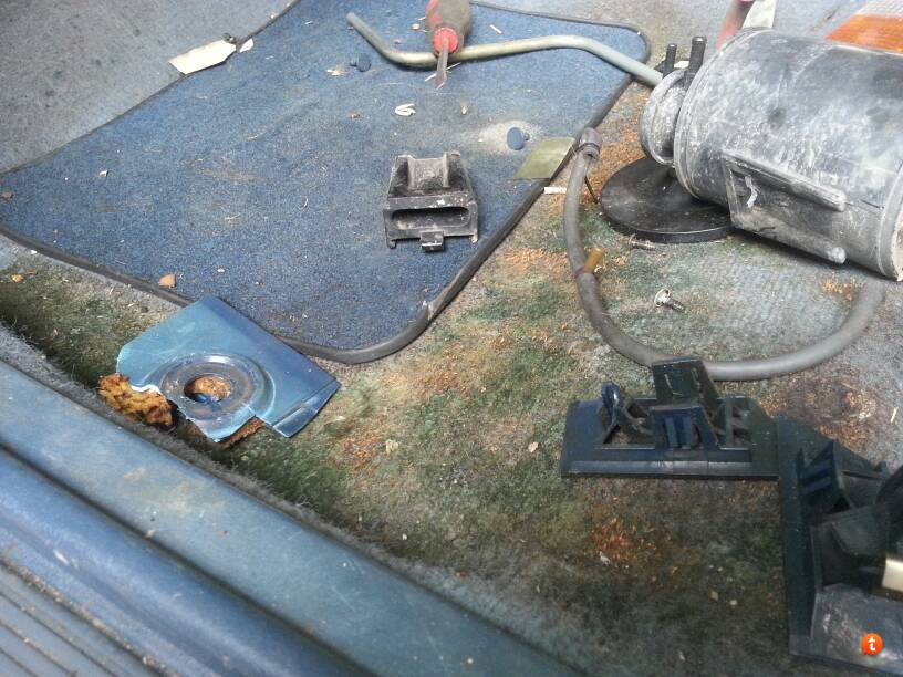The car’s cracked windscreen had been leaking water for a long time. It was pretty disgusting in there.