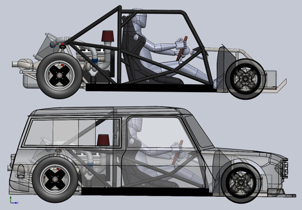 This is yet another build I’ve had stashed away for a while, one that I keep checking on for updates, hoping to see a bit more progress before I feature it. But with these builds there always comes a time when I realise that enough is enough, you all need to see it, no matter if it’s finished or not. The essentials are: 1978 Mini Clubman Estate (wag0n), rear mounted 20V turbo Passat VW engine, flat floor and raised suspension mounting points.