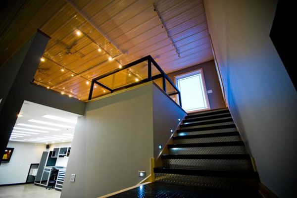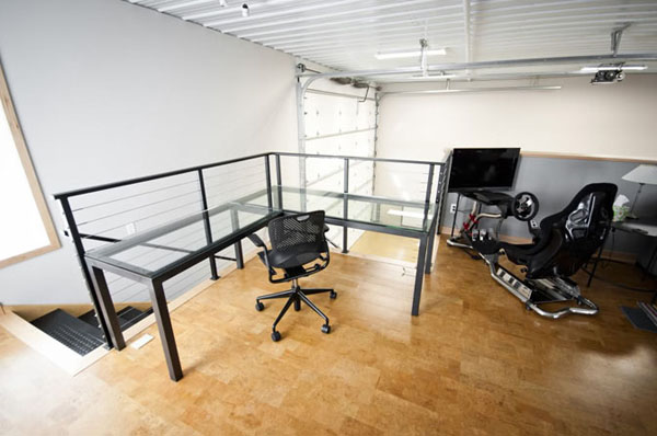 What kind of ultimate man cave would be complete without a gaming rig? The warm flooring on the upper level gives off a homely feel, a stark contrast to the utilitarian concrete in the working area downstairs.