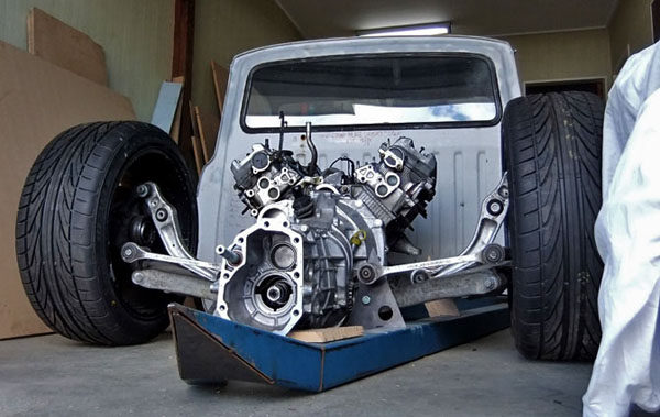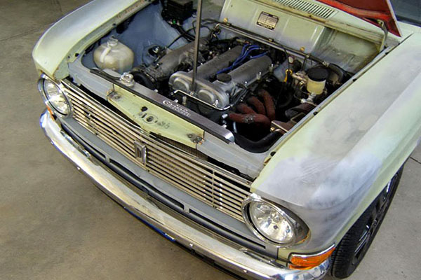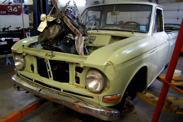 Another popular build from 2010 was also a mix-&-match project, Bob’s MX520, a Datsun 520 pickup with an NA MX5 engine/gearbox/suspension package swapped in. Starting with a stock 520, the driveline was removed to make room for the Mazda replacements.