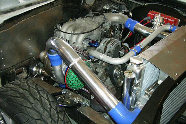 Once the car proved itself mechanically, it was taken back off the road to receive a fresh lick of paint, giving the outside a finish to match the awesomeness of what’s hiding underneath. To read the complete story of how this pickup was built (and see some burnout videos!), click here.