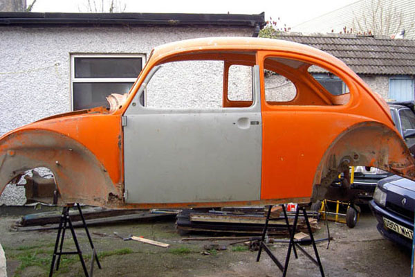 The project started out with a regular Beetle shell in a very bare state, but condition wasn’t an important factor since some serious cutting was soon to be in order to give it that hot rod look.